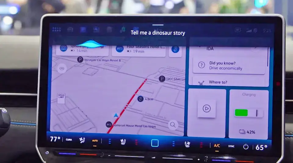 این فناوری که در خودرو با استفاده از چت جیپیتی کار میکند و تنها با صدا کردن یا فشردن یک دکمه فعال میشود در نسخه دمو داستانهایی در مورد دایناسورهای برای سرگرم کردن کودکانی که روی صندلی نشسته بودند تعریف میکرد.