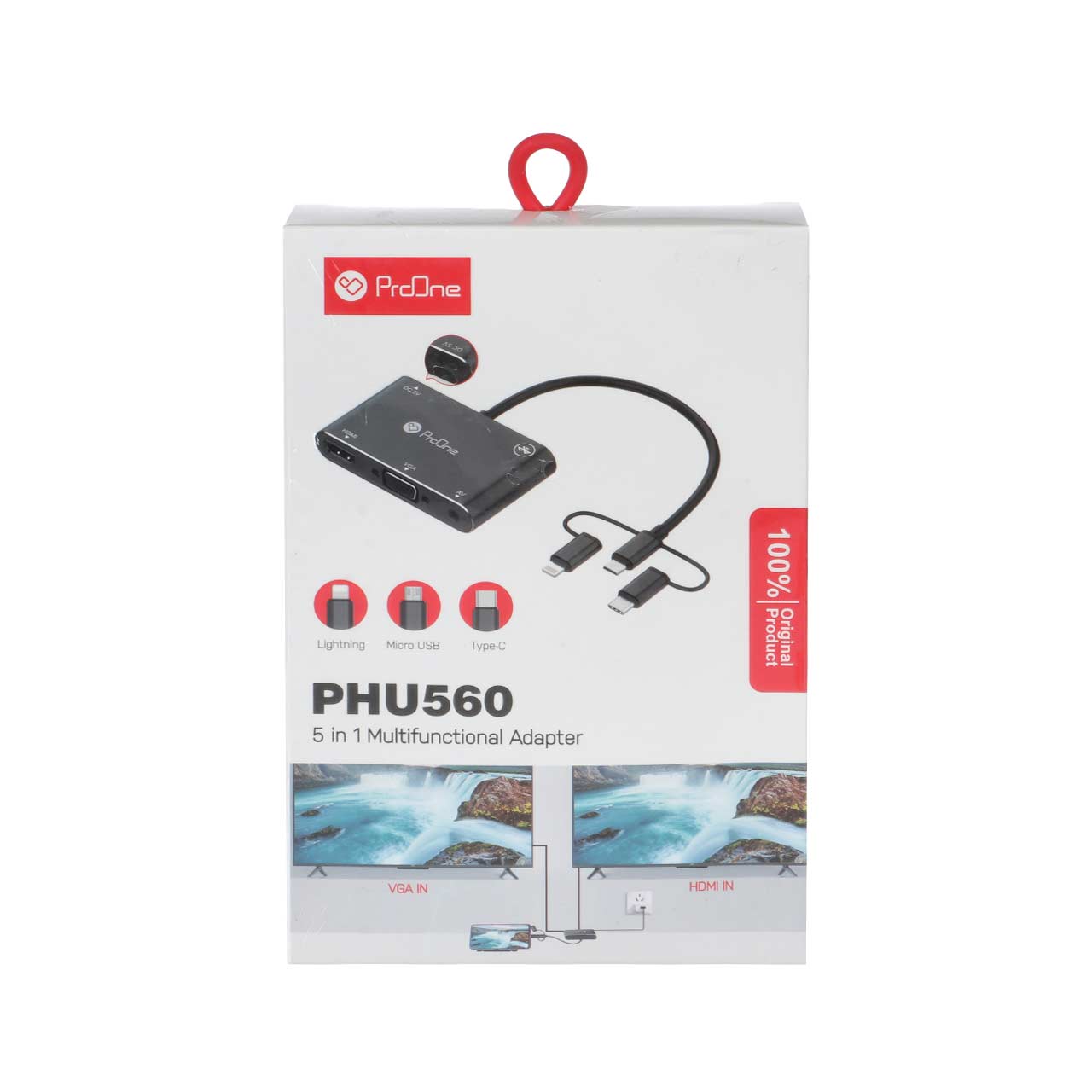 داشتن یک مبدل چندکاره باکیفیت میتواند کمک بسزایی در انجام امور به شما کند. مبدل پرووان مدل PHU560 یک مبدل با چندین خروجی مفید است. درواقع چندین پورت کاربردی در این وسیله تعبیه شده که شما را از خرید مبدلها یا هاب مجزا بینیاز میکند. این مدل مبدل دارای 3 سری Lightning/Microusb/Type-C می باشد که قابلیت اتصال به تمام دستگاه های اندرویدی، اپل و ویندوز را برای شما فراهم میکند. همچنین کابل نایلونی بافته شده و اتصال بدون قطعی از دیگر مزیتهای این مبدل هستند. می توانید از این مبدل برای پخش تصاویر و فیلم های با کیفیت بالا با اتصال دستگاه های گوشی همراه،لپ تاب به تلویزیون استفاده کنید. PHU560 قابلیت پخش 2K 60Hz (کیفیت فول اچ دی) در نمایشگرها را پشتیبانی می کند. این مبدل یک پورت AV،یک پورت DC 5v، یک پورت VGA ، یک پورت HDMI و قابلیت اتصال از طریق بلوتوث را نیز دارا می باشد. این مبدل قابلیت پخش فیلم ها و تصاویر از طریق گوشی همراه و لپ تاب را به طور همزمان به دو دستگاه تلویزیون یا پرژکتور از طریق HDMI و VGA را دارد. انداره کابل 9 سانتی متر می باشد.