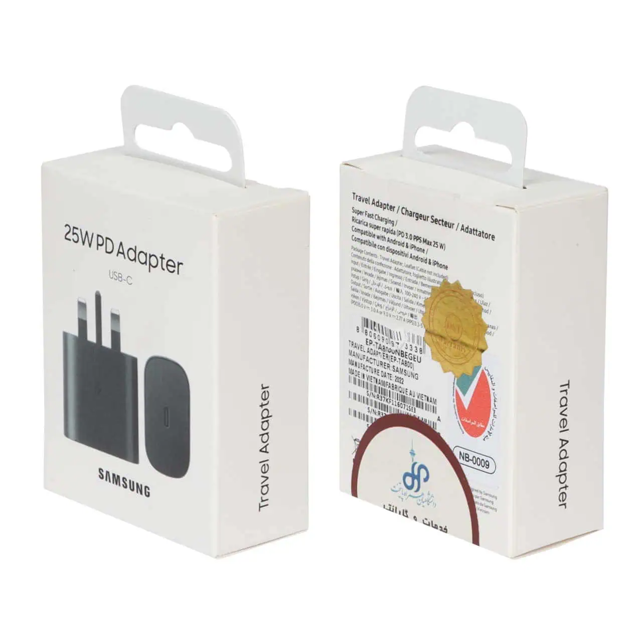 بدنه مشکی این شارژر سه پین سامسونگ (فست و PD) 25W درجه یک مدل TA800 – مشکی – DST با وزن سبک و ابعاد کم، برای حمل در کیف یا حتی جیب مناسب است. این طراحی به خصوص برای مسافران و کارمندان مفید است.