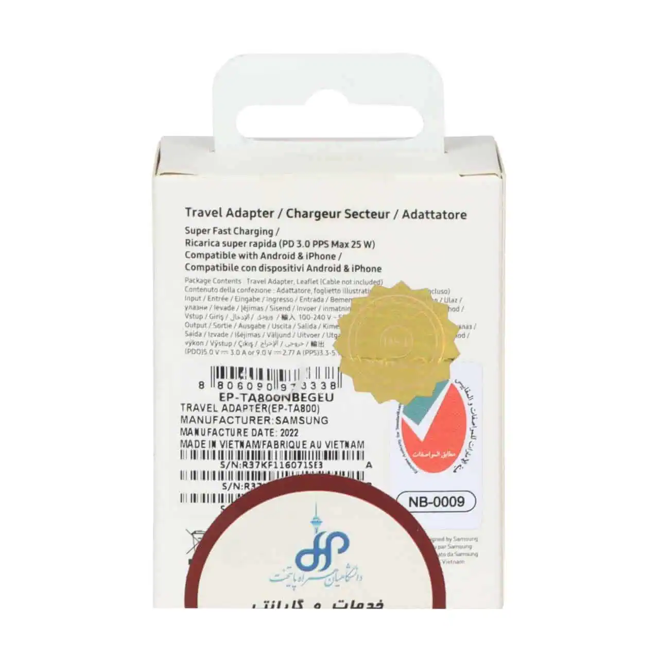 شارژر سه پین سامسونگ (فست و PD) 25W درجه یک مدل TA800 – مشکی – DST؛ راه حلی کارآمد برای شارژ سریع دستگاه های هوشمند