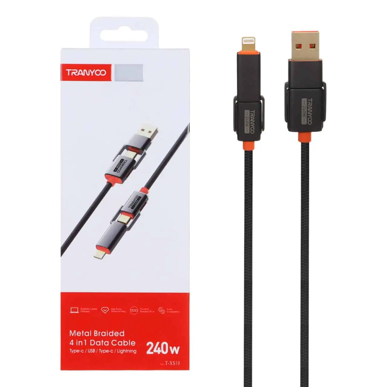 کابل شارژ فست 1.2 متری ترانیو 4 در1 مدل T-XS10 – مشکی